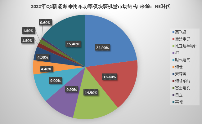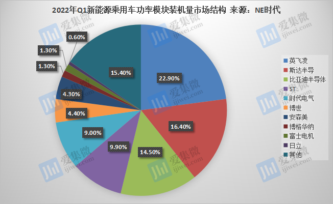 根據(jù)NE時(shí)代統(tǒng)計(jì)數(shù)據(jù),2022年Q1中國(guó)新能源乘用車功率模塊裝機(jī)量榜首仍是英飛凌,其以25.3萬套位列行業(yè)第一,其后2-4名分別為斯達(dá)半導(dǎo)、比亞迪半導(dǎo)體、ST、時(shí)代電氣,裝機(jī)量分別為18.2萬套、16.1萬套、10.9萬套、10萬套。值得注意的是,斯達(dá)半導(dǎo)、比亞迪半導(dǎo)體及時(shí)代電氣三家本土企業(yè)三家本土企業(yè)同比增速分別為203.3%、209.6%、>500%,遠(yuǎn)高于英飛凌78.2%的同比增速;合計(jì)裝機(jī)量為44.3萬套,合計(jì)市場(chǎng)份額已達(dá)39.9%。